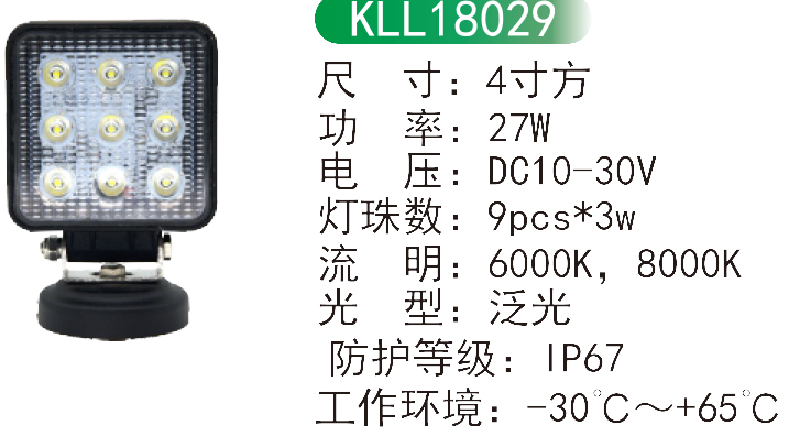 克莱汽车照明产品中心 » 按系列分类 » LED系列 » 工作灯 » 4寸方工作灯KLL18029