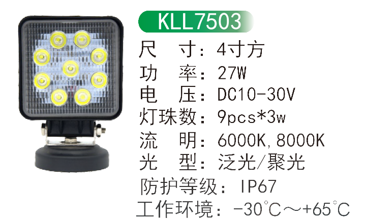 * 表示必填采购:4寸方工作灯KLL7503