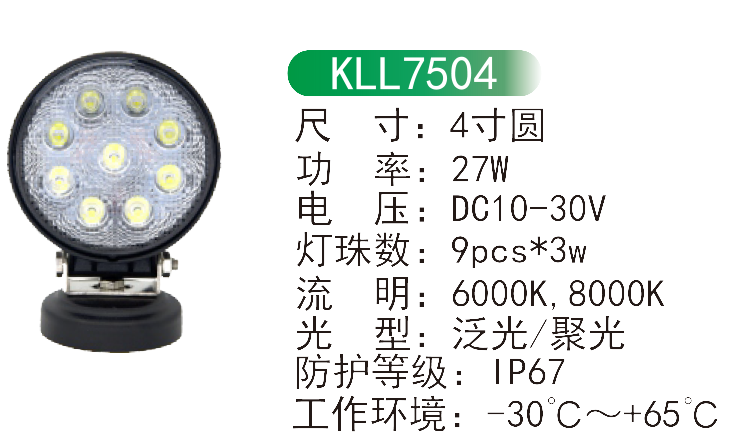 克莱汽车照明产品中心 » 按系列分类 » LED系列 » 工作灯 » 4寸圆工作灯KLL7504