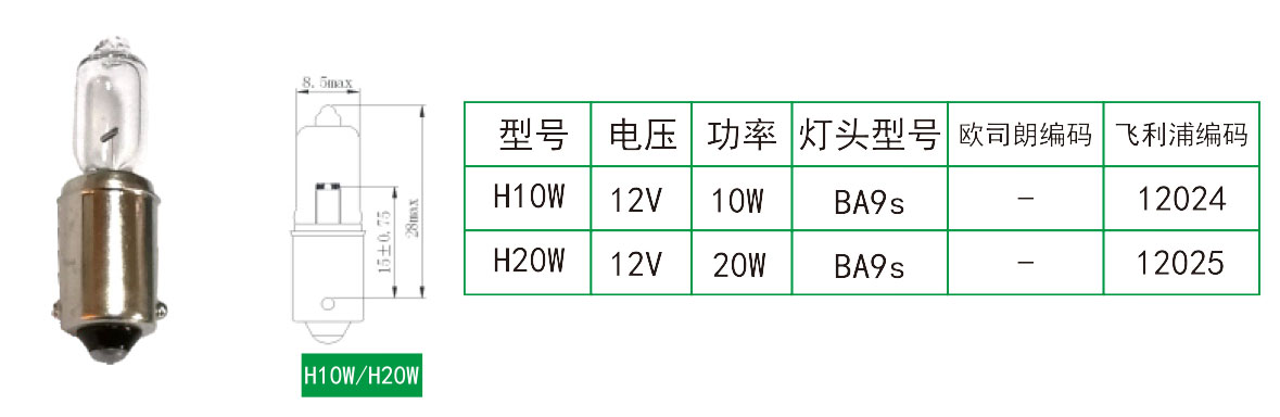 克莱汽车照明产品中心 » 普通款卤素灯 » 卤素灯H10W/H20W