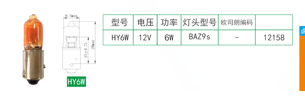 克莱汽车照明产品中心 » 普通款卤素灯 » 卤素灯HY6W