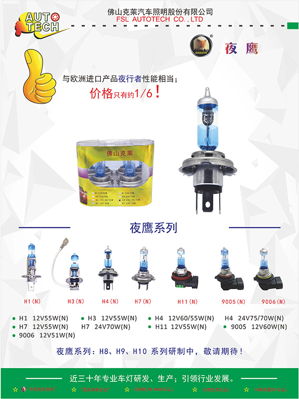 克莱汽车照明产品中心 » 按车灯材质分类 » 卤素前大灯 » 汽车卤素灯夜鹰H7